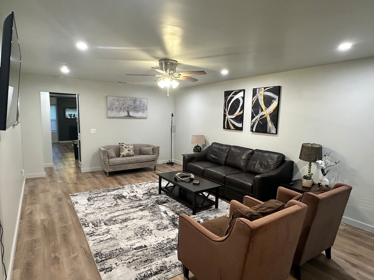 Willkommen im Bellini House, wo moderner Luxus auf gemütlichen Komfort trifft! Unser komplett renoviertes Haus ist mit allem Notwendigen ausgestattet, um einen komfortablen und unvergesslichen Aufenthalt zu gewährleisten. Entspanne dich bei einem Drink am Kamin oder entspanne dich auf einem unserer Plüsch-Memory-Schaum-Betten! Der offene Grundriss ist perfekt geeignet für Familien oder eine Gruppe von Freunden. Das stilvolle und luxuriöse Dekor wird dich anziehen und du wirst nicht mehr gehen wollen!