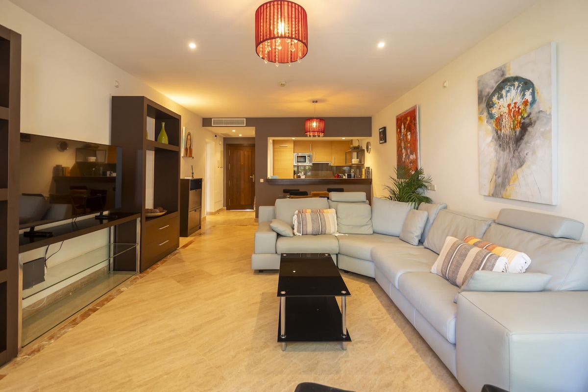 Unsere neue, HIGHend-Wohnung, nur 8 Minuten vom Zentrum von Marbella entfernt. Sie bietet Meerblick und schafft eine ruhige Umgebung für deinen spanischen Urlaub. Die Wohnung hat skandinavische Eleganz mit klaren Linien, neutralen Tönen und minimalistischem Design und schafft eine helle und raffinierte Atmosphäre für einen unvergesslichen Aufenthalt. Unser Gast hat Zugang zum Spa mit beheiztem Pool, Sauna und Fitnessraum, alles kostenlos mit fantastischem Meerblick. Der Fitnessraum ist gut ausgestattet mit erstklassigen Maschinen und das Clubhaus fügt dem Aufenthalt ein soziales Element hinzu.