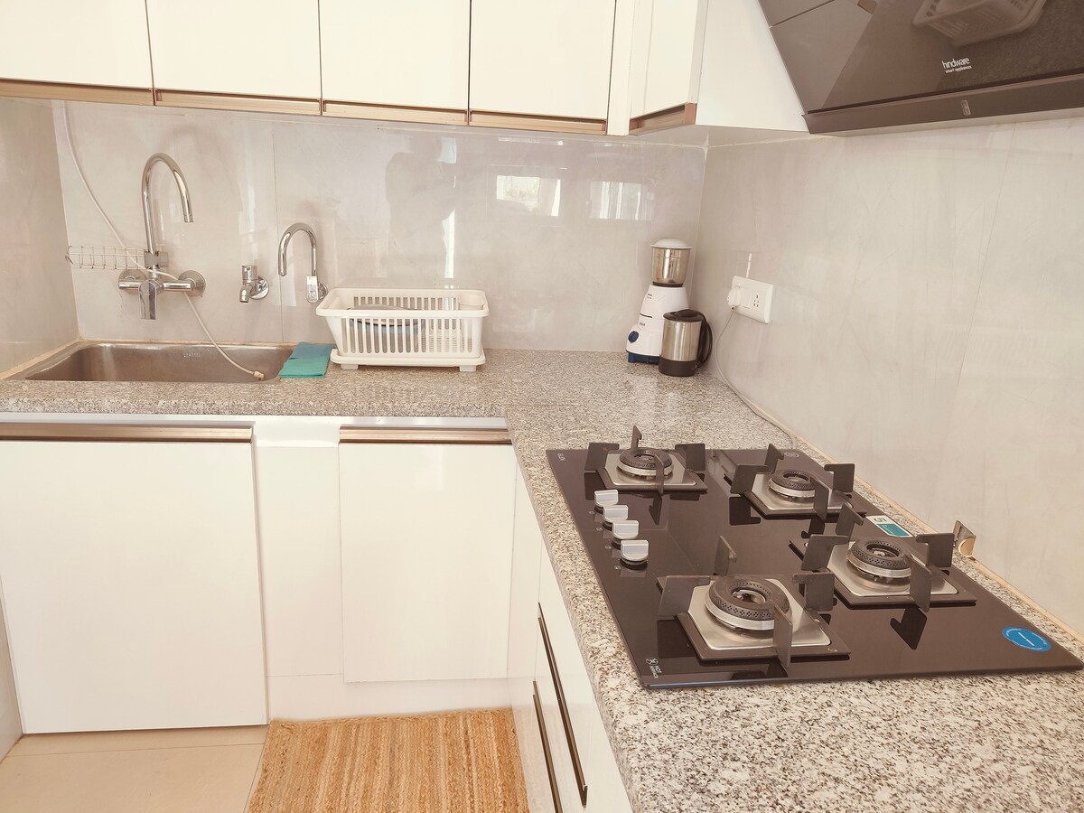 SolSky Haus,a thoughtfully designed 1BHK boutique stay in Tapovan, Rishikesh.This is more than just an apartment -it’s a calm retreat.The space features a serene bedroom for restful sleep, a cozy living area for relaxing or working remotely,a small kitchen, and a private balcony where you can enjoy fresh mountain air and golden sunsets. Soft neutral interiors, natural light, and clean, uncluttered design create an atmosphere that feels airy and soothing.