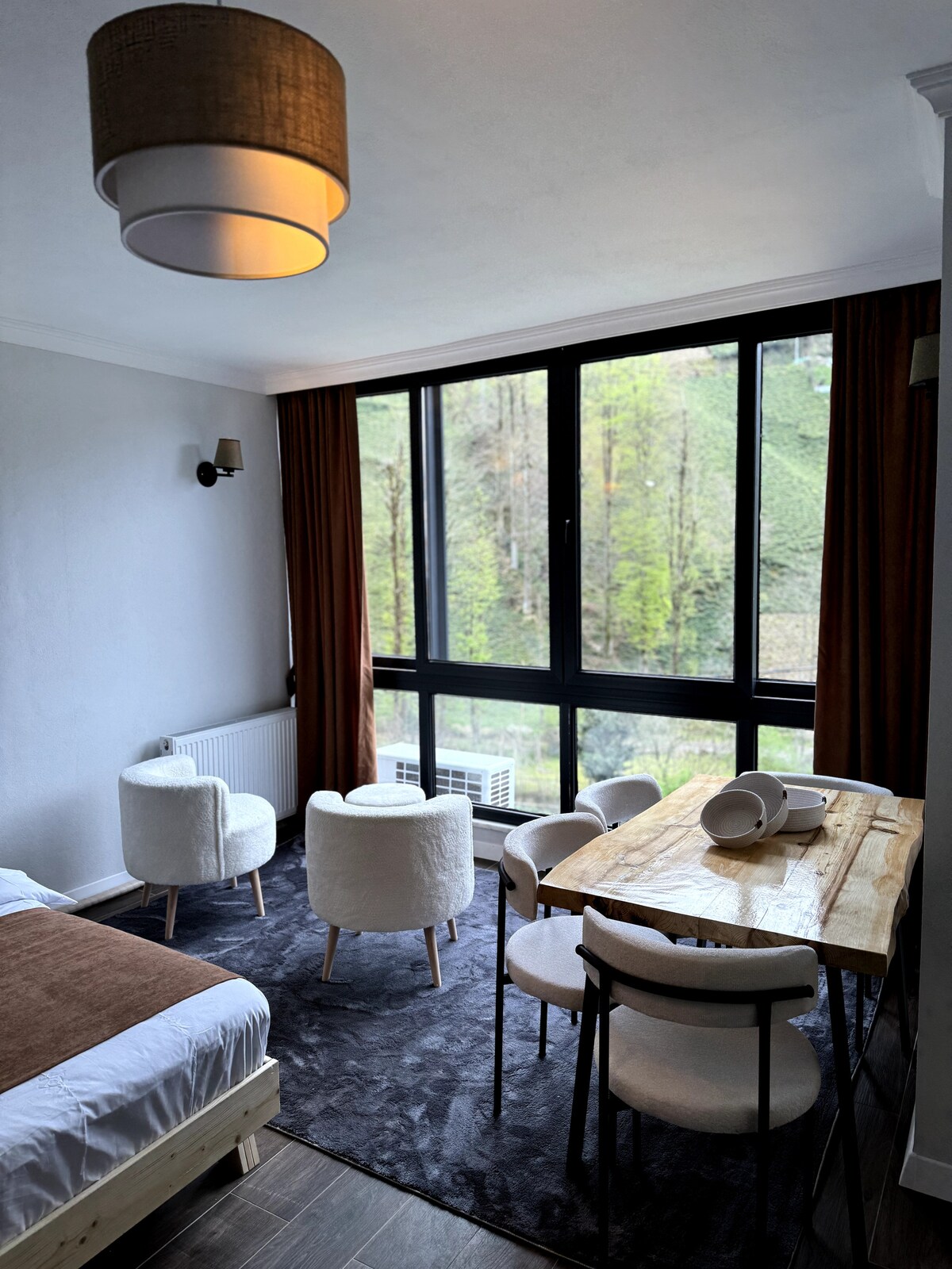 Der Valent Suit Bungalow bietet eine Unterkunft in Kontakt mit der Natur im Stadtteil Ardeşen von Rize, in der Nähe des Fırtına Creek. Das Resort zeichnet sich durch seine Duplex-Unterkünfte mit Whirlpool und Kamin aus. Blick auf den Fluss: Alle Zimmer bieten Blick auf Storm Creek Frühstücksservice: Frühstück wird den Zimmern mit einem Serviertablett serviert Aktivitäten: Verschiedene Aktivitäten können in unmittelbarer Nähe durchgeführt werden, wie Zipline, Rafting und historische Brückenbesuche.