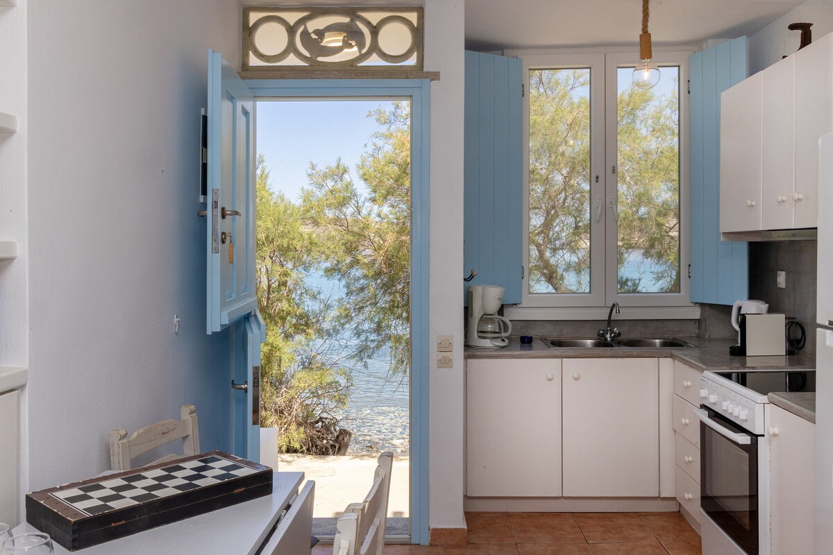 Das Haus steht am Strand von Agios Romanos. Der Strand kann zu Fuß erreicht werden. Es gibt eine Taverne, ein kleines Café und einen Strandbar. Die Sofas und das KIng-Size-Bett sind eingebaut. Das herausragendste Merkmal des Hauses ist die einzigartige Aussicht, die du von jedem Zimmer und der Balkon genießen kannst. Nach jeder Unterkunft wird das Haus mit der Verwendung eines Dampfreinigers und Reinigungsmitteln, die Chlor enthalten, desinfiziert. Während deines Aufenthalts und wenn du möchtest, wird das Haus alle 3 Tage kostenlos gereinigt.