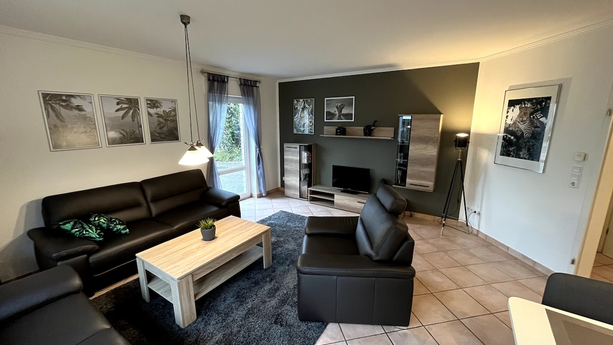 Lehne dich zurück und entspanne dich – in dieser ruhigen, stilvollen Unterkunft. Wald und Natur erreichen Sie in wenigen Minuten. Die 60qm moderne 2-Zimmer-Wohnung mit einem sehr schönen Balkon in Südlage gehört dazu. Das Schlafzimmer ist mit einem neuen und hochwertigen Boxspringbett (200x200cm) ausgestattet. Im Wohnzimmer befindet sich eine moderne Wohnlandschaft, die sich zu einem bequemen Doppelbett ausziehen lässt. Die Wohnung ist auch ideal für Messegäste.