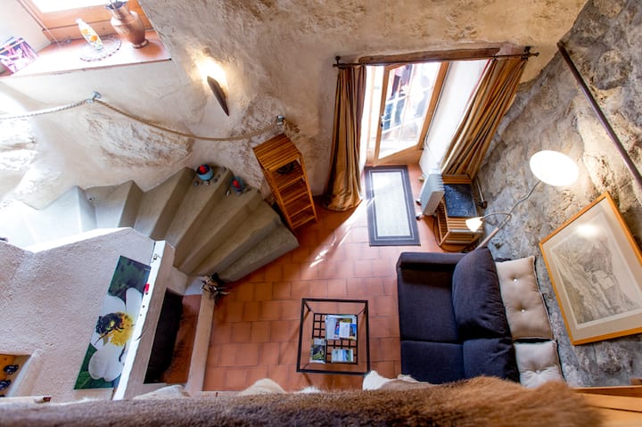Unser Hof mit der aussergewöhnlichen Ferienwohnung in einem alten Burgteil aus dem Mittelalter befindet sich in einem kleinen Bauerndorf in den Schweizer Bergen.
