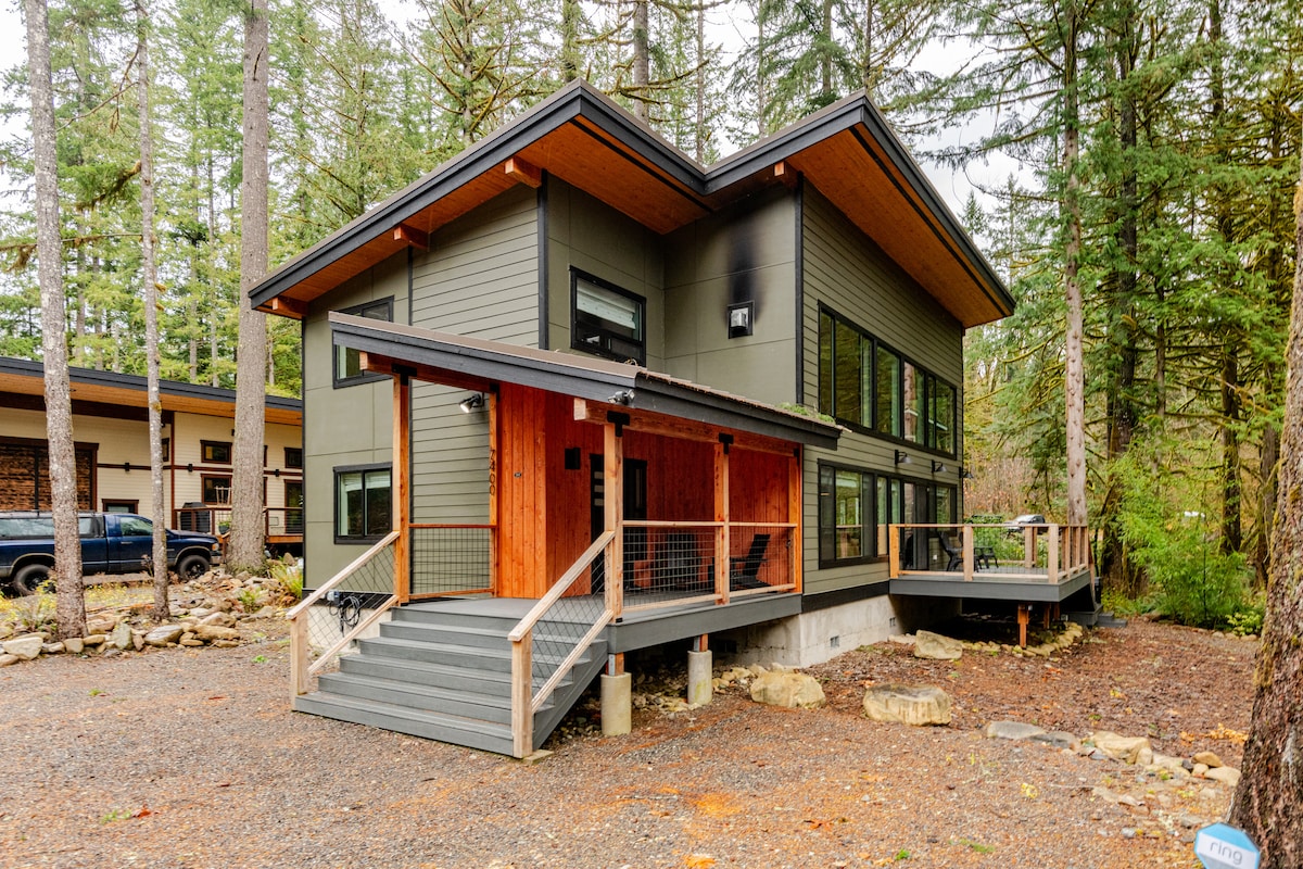 Entfliehe dem Cascade River Hideaway, nachdem du den Nationalpark North Cascades erkundet hast. Diese welpenfreundliche Hütte ist ideal für 2-4 Personen, die einen ruhigen Rückzugsort in den hoch aufragenden Zedern des umzäunten Cascade River Park suchen. Genieße den Blick auf den Lookout Mountain von der Terrasse aus oder kuschle dich in der neu renovierten Hütte. Es verfügt über ein Queensize-Bett im Obergeschoss, ein Schlafsofa im Erdgeschoss, eine voll ausgestattete Küche und eine Kaffeebar, einen TV mit WLAN, eine Waschmaschine/einen Trockner und ein Badezimmer mit ebenerdiger Dusche.