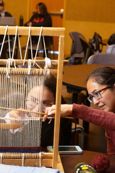 Weaving process with a Navajo weaver