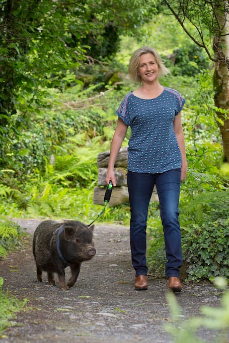 Spaziergang mit einem Schweinchen