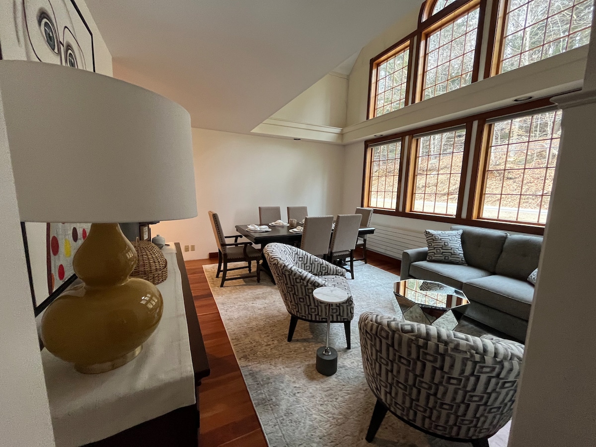 Nur wenige Schritte zu Fuß von den fantastischen Okemo-Pisten entfernt, ist das C-Gebäude die am nächsten gelegene Unterkunft am A-Quad/B-Quad-Lift und dieses Gebäude bietet bequeme Parkplätze direkt unten und kostenloses WLAN (dediziertes Xfinity-Modem, kein Problem für Videokonferenzen). Du wirst diese gemütliche Unterkunft mit Hartholzboden und eigenem Balkon und Sonnenschein nach dem Skifahren lieben. Tolle Sonneneinstrahlung. Der Kamin wurde ab der Saison 2023-2024 auf einen elektrischen Kamin umgestellt.