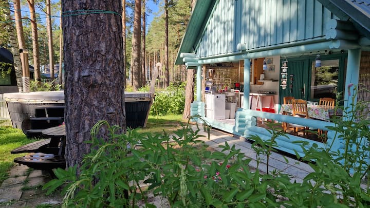 Fröhliche Holzhütte im Nationalpark Lahemaa