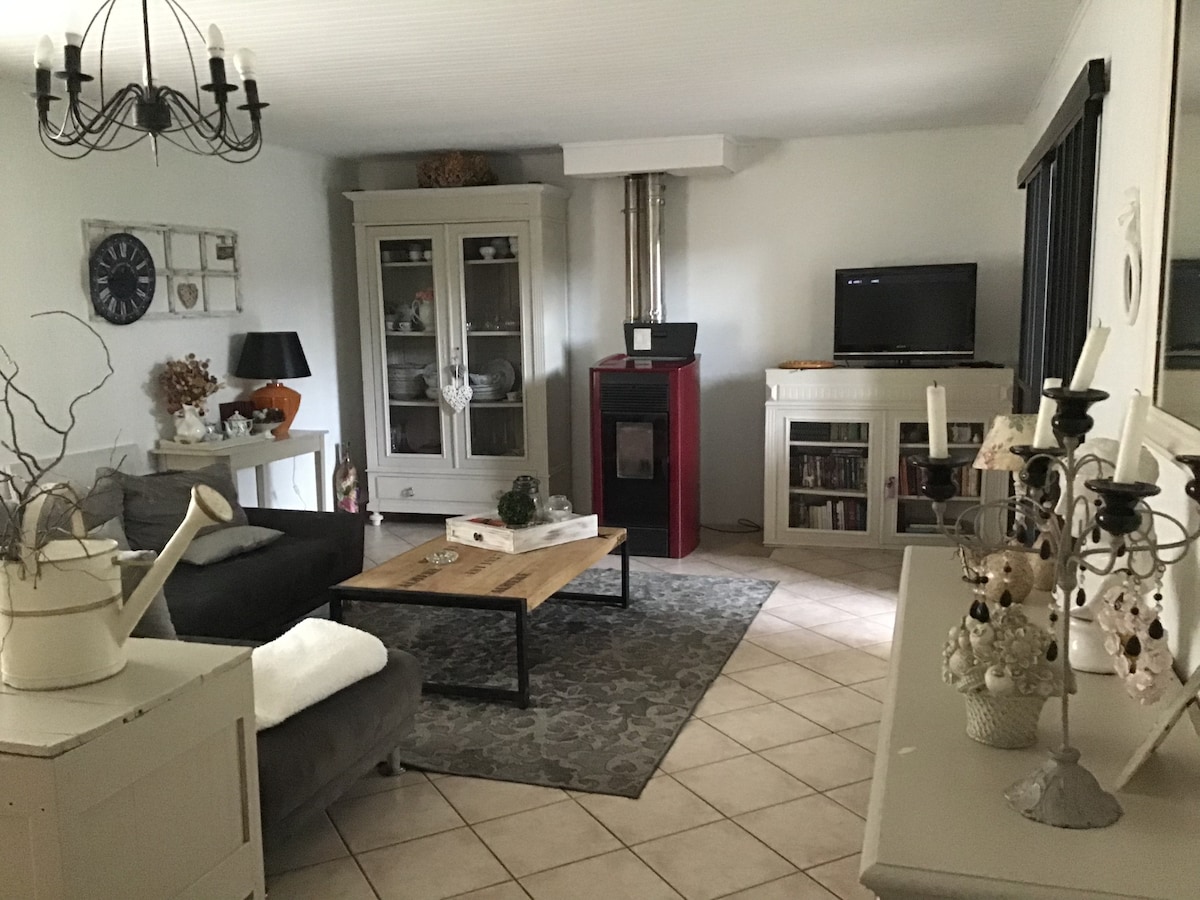 Ein schöner Scheunenumbau, umgeben von Wald. Eine ruhige Lage mit den Geräuschen der Tierwelt. Geschmackvoll eingerichtet im Einklang mit den ursprünglichen Merkmalen. Ein knisternder Holzofen aus Gusseisen für kühle Abende. Alle Annehmlichkeiten, die du brauchst, um dein Gourmet-Essen zu kochen. Genieße deinen eigenen privaten Pool, Whirlpool und Feuerstelle. Die Scheune ist die zweite Unterkunft am Standort, was bedeutet, dass du vom Gastgeber mit einem herzlichen mehrsprachigen Empfang begrüßt wirst. Du hast absolute Privatsphäre.