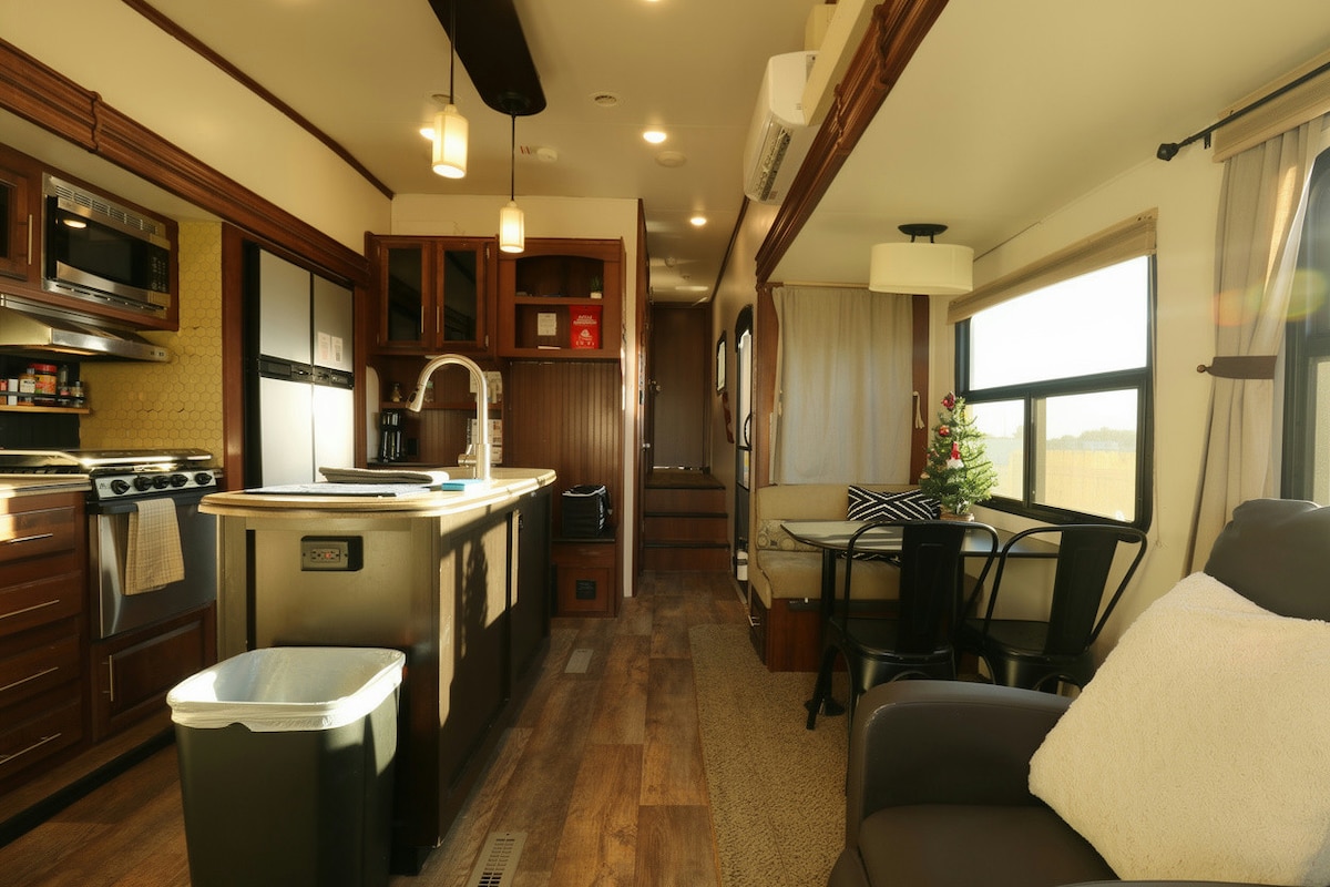 Cozy RV retreat with fireplace, chimenea, and outdoor grilling, perfect for couples or professionals who want peace without losing convenience. • Home stereo system & Smart TVs • On Private Property • Kitchenette & Electric Fireplace • Chimenea & BBQ Grill • Shared Washer + Dryer onsite