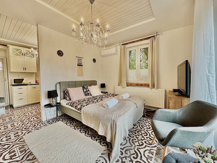 Fröhliche, ruhige, naturnahe Unterkunft im Dorf.