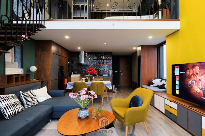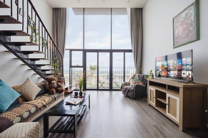 Luxuriöse stilvolle Maisonettewohnung im 18. Stock, Blick auf WestLake | Badewanne