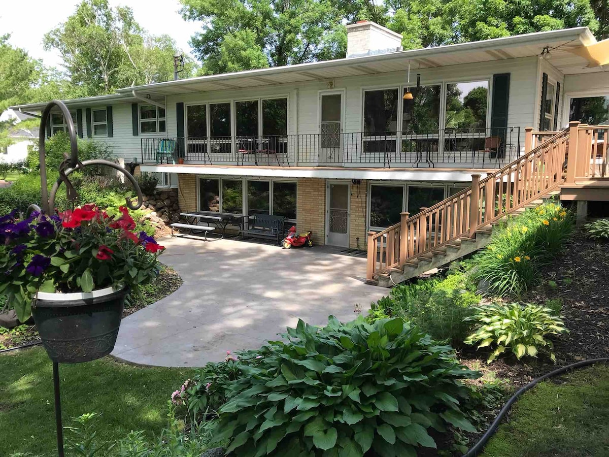Tolle Lage! 4 Schlafmöglichkeiten, tolle Qualität! Von der Bettwäsche über die Küche bis hin zu den Möbeln! Tolle Erreichbarkeit zu Fuß zu Restaurants, schönen Flussparks, Lebensmittelgeschäften und Einkaufsmöglichkeiten, alles innerhalb von Blöcken. Nur 4 Minuten vom St. Cloud Hospital entfernt. Egal, ob du den 65-Zoll-4K-Smart-TV genießt, mit WLAN verbunden bist, in unserer schönen, gut ausgestatteten Küche kochst oder einfach nur schläfst, du wirst Komfort und Qualität finden. Außenterrasse mit Feuerstelle, Tisch und Holzkohlegrill. Kostenlose Parkplätze 10'x55' können LKW und Anhänger aufnehmen.
