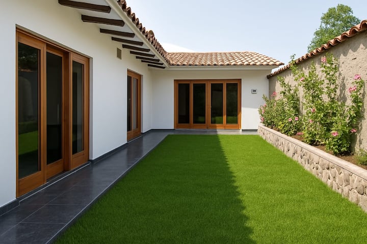 Privathaus mit riesigem Garten und Blick auf den Wasserfall