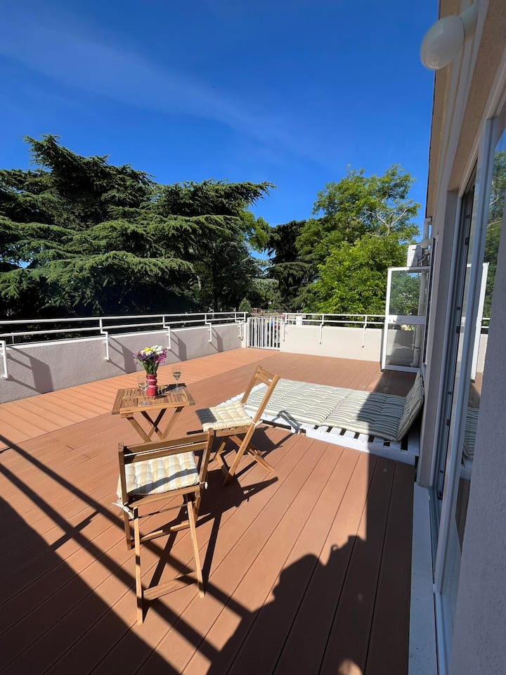 Modernes und warmes Studio in der Nähe der Arena