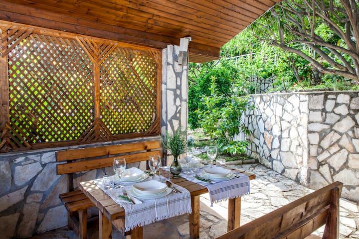 Gemütliche Wohnung 3 mit Meerblick in einer Villa mit Garten