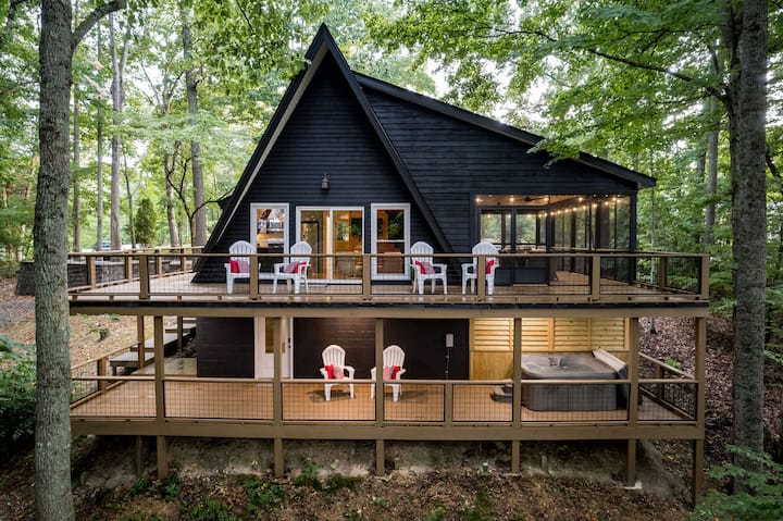 Gemütliche Hütte mit Whirlpool, Sauna, Pickleball und Feuerstelle!