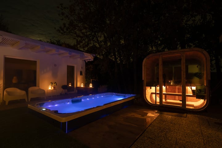 Entspannung am Bach, Whirlpool, Sauna, SwimSpa