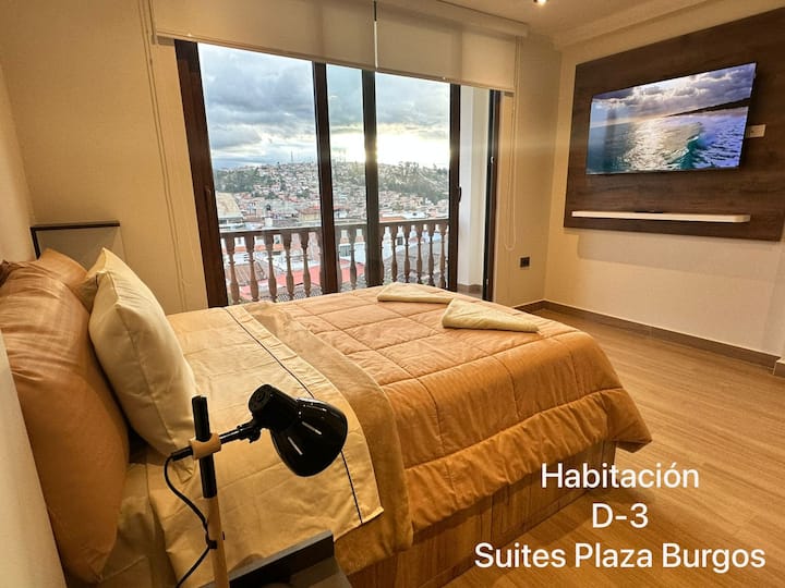 Zimmer mit Queensize-Bett, Zugang zu Küche und Esszimmer