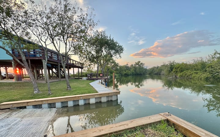 Indianola: Blockhütte am Wasser mit beleuchtetem Pier