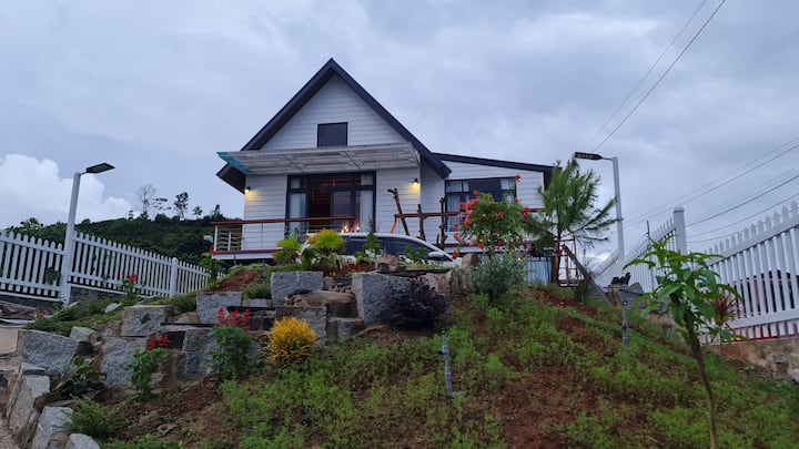 Bao Loc Haus ist voller Blumen, Blick auf die Berge