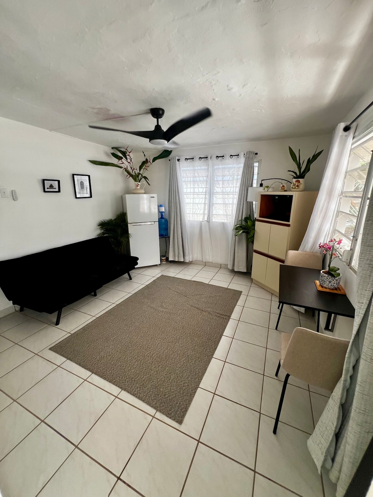 The Cozy Studio is located in a two-unit property with an independent entrance and parking. Fully equipped with a kitchenette Nestled in a charming neighborhood, this studio serves as a central hub for exploring all that Puerto Rico has to offer. Enjoy peace of mind during your stay with our solar panels and battery system, ensuring your vacation remains uninterrupted. Experience the best of the Caribbean in a modern space, located near supermarkets and restaurants. Your unique vacation awaits!