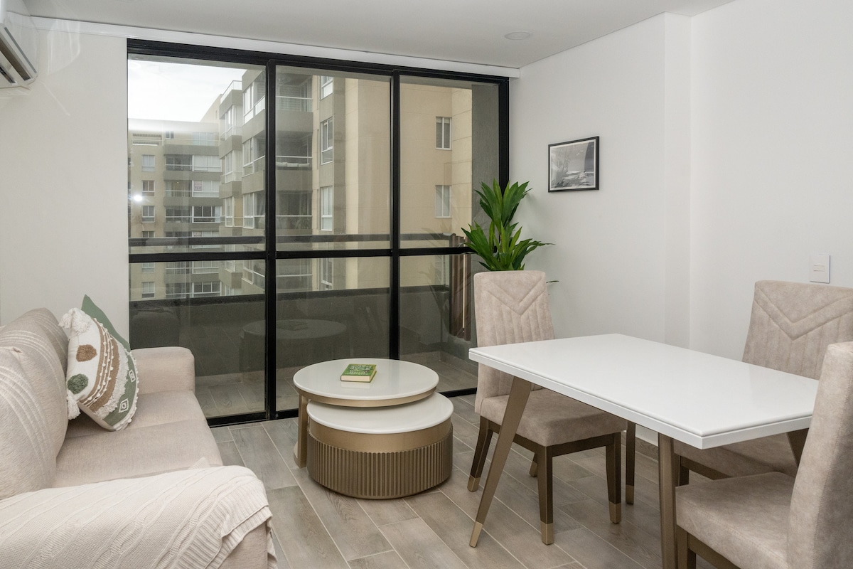 Apartamento nuevo, moderno y acogedor en zona residencial de Barranquilla. Ideal para familias o grupos. Equipado con Wi-Fi, aire acondicionado, cocina completa, lavadora, piscina y Smart TV con Netflix y Prime Video. A solo 5 min en carro o 10 caminando de centros comerciales, Universidad del Norte y Clínica Portoazul. Comodidad, ubicación y seguridad en un solo lugar.