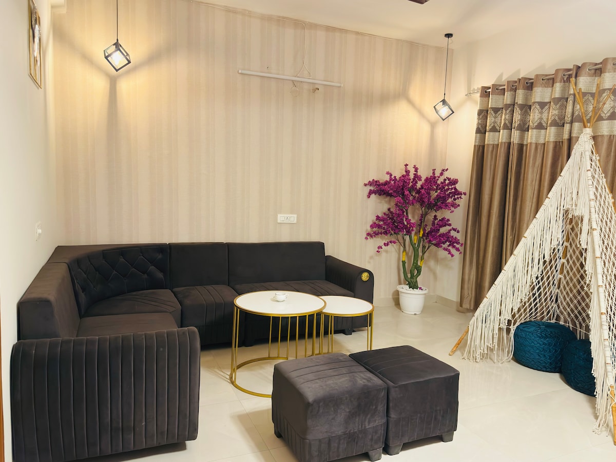 Luxurious 3BHK Floor with Private Pool, private balcony with swing, projector screen and table tennis at VIP Road, Zirakpur Our stunning 3BHK floor, complete with a private pool, offers the perfect getaway for families, groups, or anyone looking to indulge in comfort and style. Located on the vibrant VIP Road, this spacious haven combines modern amenities with a tranquil atmosphere, ensuring a memorable stay. Spacious Living Fully Equipped Kitchen Comfortable Bedrooms Modern Amenities