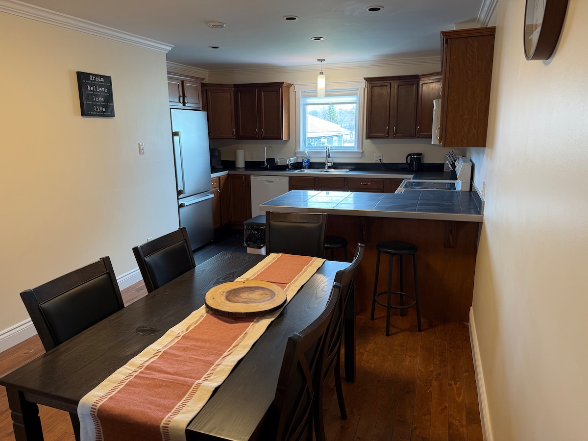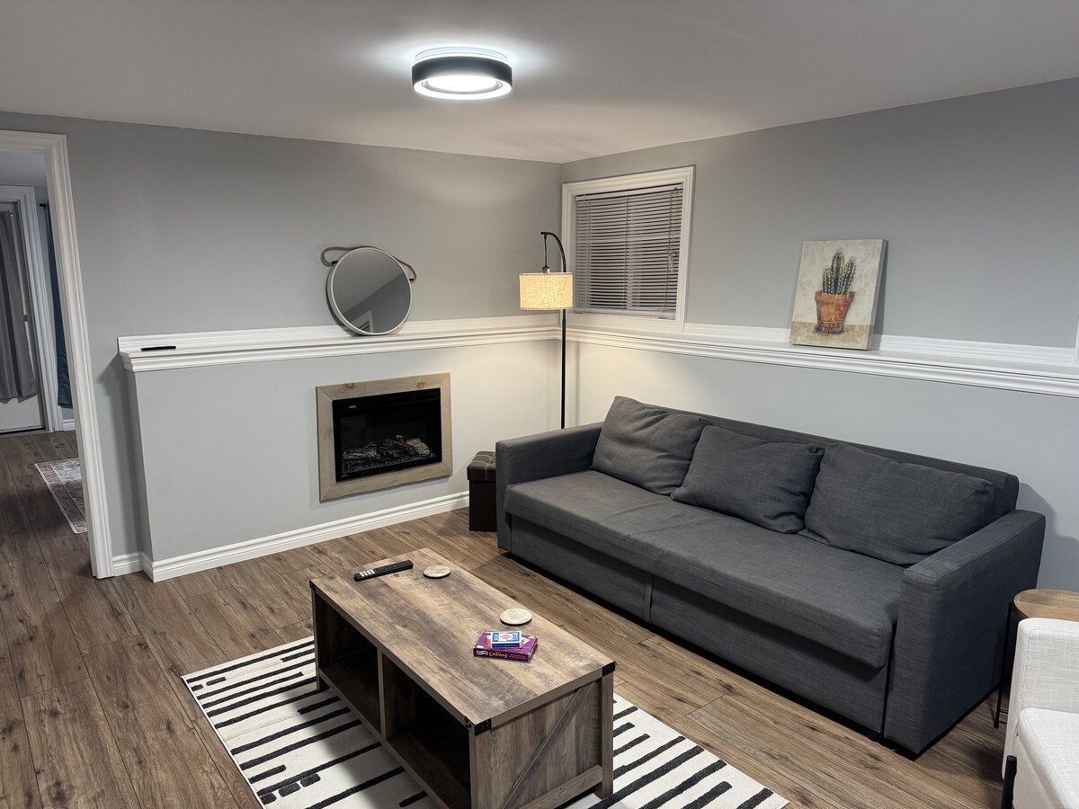 ***Bitte beachte, dass die Steuern im Übernachtungspreis enthalten sind *** Diese geräumige, gemütliche und moderne Suite befindet sich in großartiger, zentraler Lage, um die Fundy Coast sowie das historische Uptown Saint John zu erkunden. Dies ist ein Ort, an dem sich jeder ausstrecken und entspannen kann, sei es vor dem eleganten Flachbildfernseher, dem Propan-Kamin im Innenbereich oder an der Feuerstelle im Freien in Adirondack-Stühlen mit Blick auf eine malerische Aussicht auf sanfte Hügel und einen kleinen Teil des St. John River.
