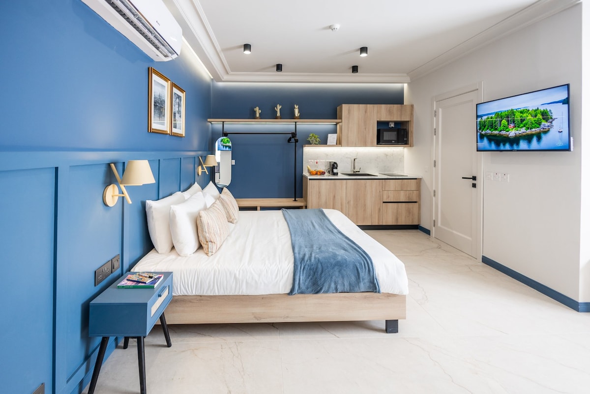 Brand new luxury serviced studio apartment. Each studio has its own full size kitchen and dining area. There are lots of great restaurants, pubs and shop and a lovely seaside walk along the Gzira Promenade just 2 mins away from the apartment. You'll live like a local, be close to the gorgeous blue sea and nightlife. Bus stop is 2 min away. Please note that check-in is strictly from 3:00 PM onwards, and check-out is strictly by 10:00 AM at the latest.