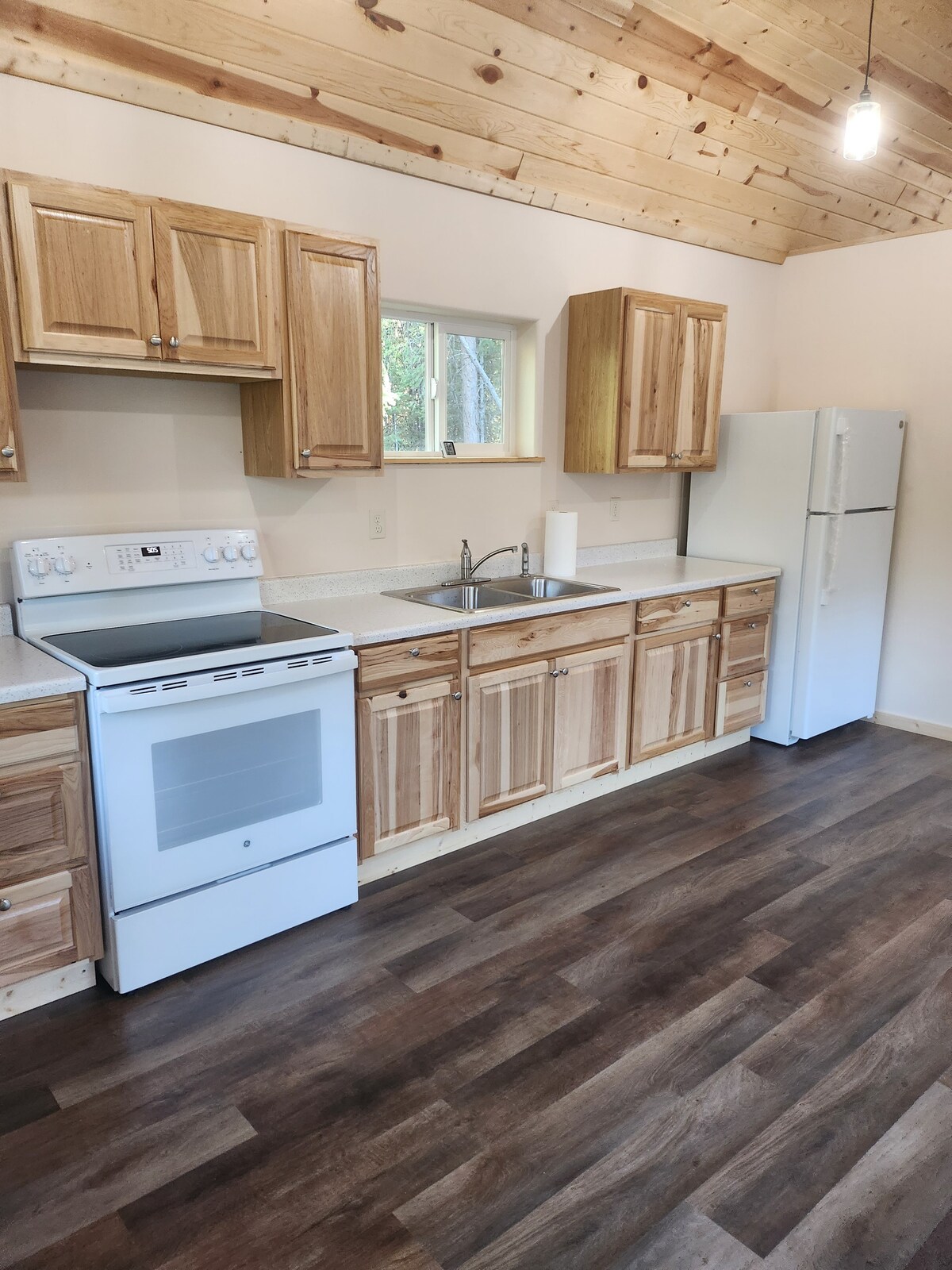 Diese gemütliche 576 Quadratfuß große Hütte ist perfekt für deinen nächsten Kurzurlaub in Montana! Ein Badezimmer mit Dusche, Seife, Küche und Veranda mit Bergblick durch die Bäume, du wirst kein Problem haben, nur etwas Zeit allein zu genießen! Genieße Hängematten zwischen den Bäumen oder sitze auf der Veranda und genieße Bäume. Der Warmwasserbereiter ist klein, 5 Gallonen, also müssen die Duschen kurz sein. Tut mir leid, das ist die einzige Größe, die wir dort reinkommen konnten. Es gibt keinen Backofen, aber es gibt einen 2-Brenner, eine schöne Kochplatte und eine Fritteuse.