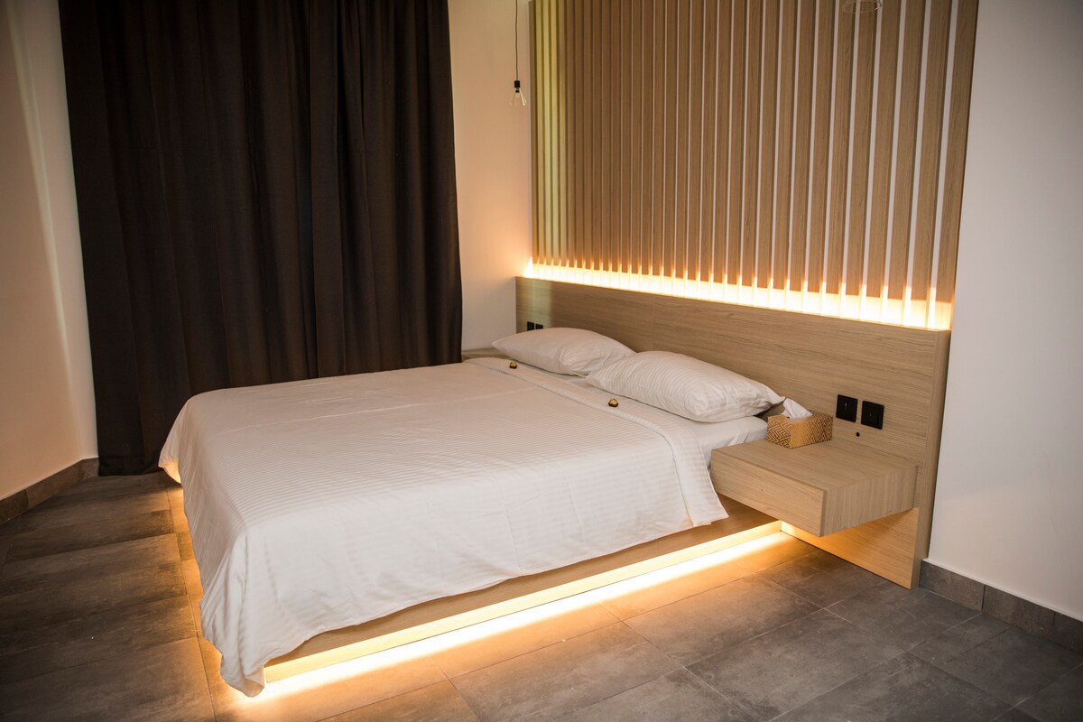 ** Bitte vor der Buchung lesen ** Eine neue gemütliche Wohnung mit Markenmöbeln, einem großen Wohnzimmer, einem Hauptschlafzimmer, zwei luxuriösen Badezimmern, einer voll ausgestatteten Küche, einem hohen Boden, kostenfreiem WLAN; einfach, es ist für flexibles Wohnen wie zu Hause konzipiert. Bitte beachte, dass einheimische Paare, die bereit sind, in der Wohnung zu übernachten, bitte ihre Heiratsurkunde vorlegen.