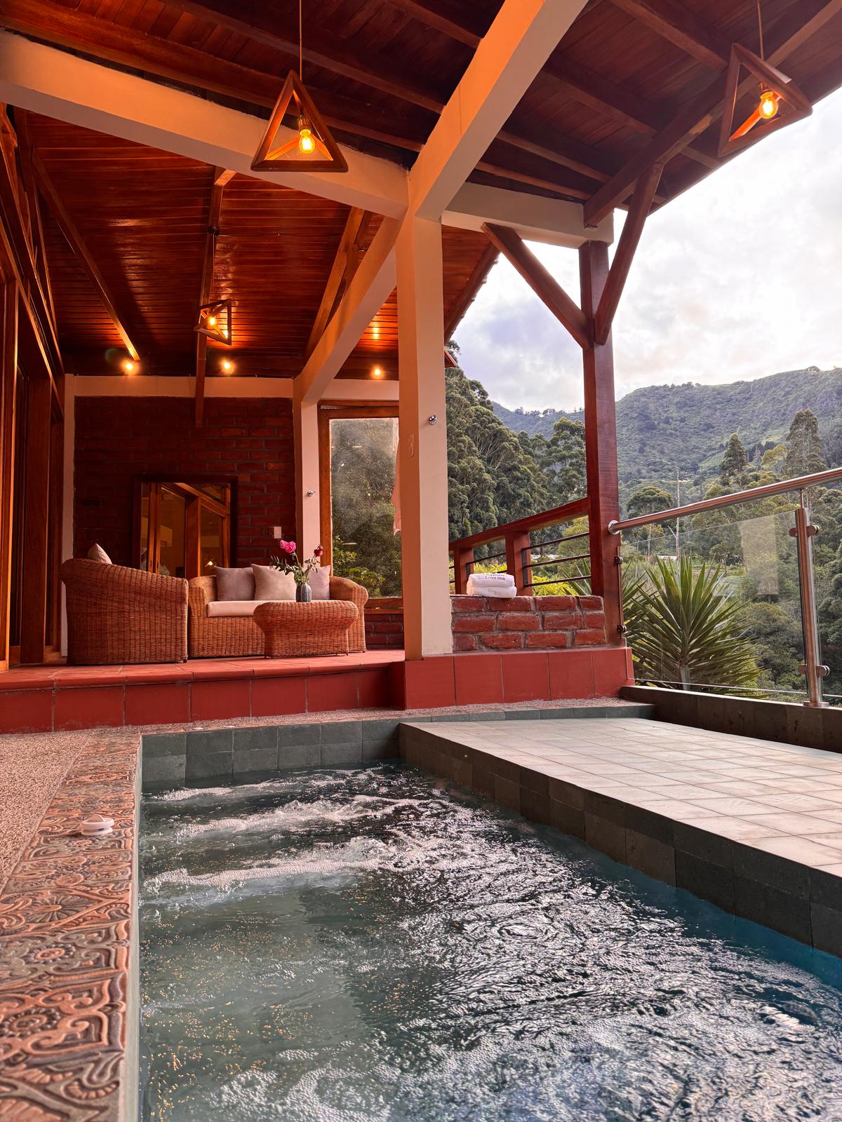 • Der Vulkan und die Cascada de la Virgen sind Teil der Landschaft vom Zimmer oder vom Whirlpool aus. Der Holzduft und das warme Licht der Schlammlampen umhüllen alles in unvergesslicher Ruhe. • Die Villa Veleta bereichert das, was bereits etwas Besonderes ist. Jeder Bogen, jedes unendliche Fenster und jedes edle Material wurde ausgewählt, damit die Zeit geteilt wird, um natürlich zu fließen. Alles, in der Nähe des Besten von Baños. ✔ Personalisiertes romantisches Ambiente ✔ 100 % privat ✔ Concierge, Transport & individuelle Touren