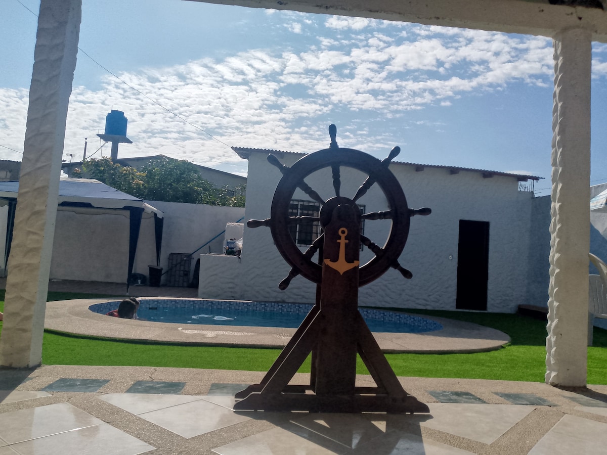 Desde este alojamiento céntrico todo el grupo podrá tener fácil acceso a la playa de San Lorenzo ubicada en Salinas, esta úbicada a dos cuadras de la playa tiene garage gratis espacio para 4 a 5 vehiculos, cuenta con internet, TV, cocina todo amueblado y podra disfrutar de su propia piscina, tiene camaras de seguridad tiene capacidad para 27 personas porque tengo 2 suites independientes adicionales
