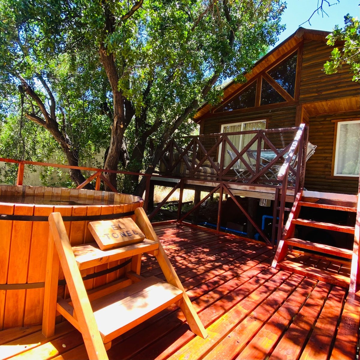 Cabaña con Hot Tub - Terraza ampliada Para desconexión y relajo, en medio de la naturaleza, en una cabaña aislada con una terraza ampliada para un Hot Tub privado ilimitado. La casa cuenta con estacionamiento privado. El lugar es silencioso y bien ubicado, ideal para descansar y conocer la zona. Además, dentro de la misma propiedad hay una bajada al río privada, que se puede acceder en una pequeña caminata, solo para huéspedes. Espacio para familias, parejas o amigos de cualquier edad.