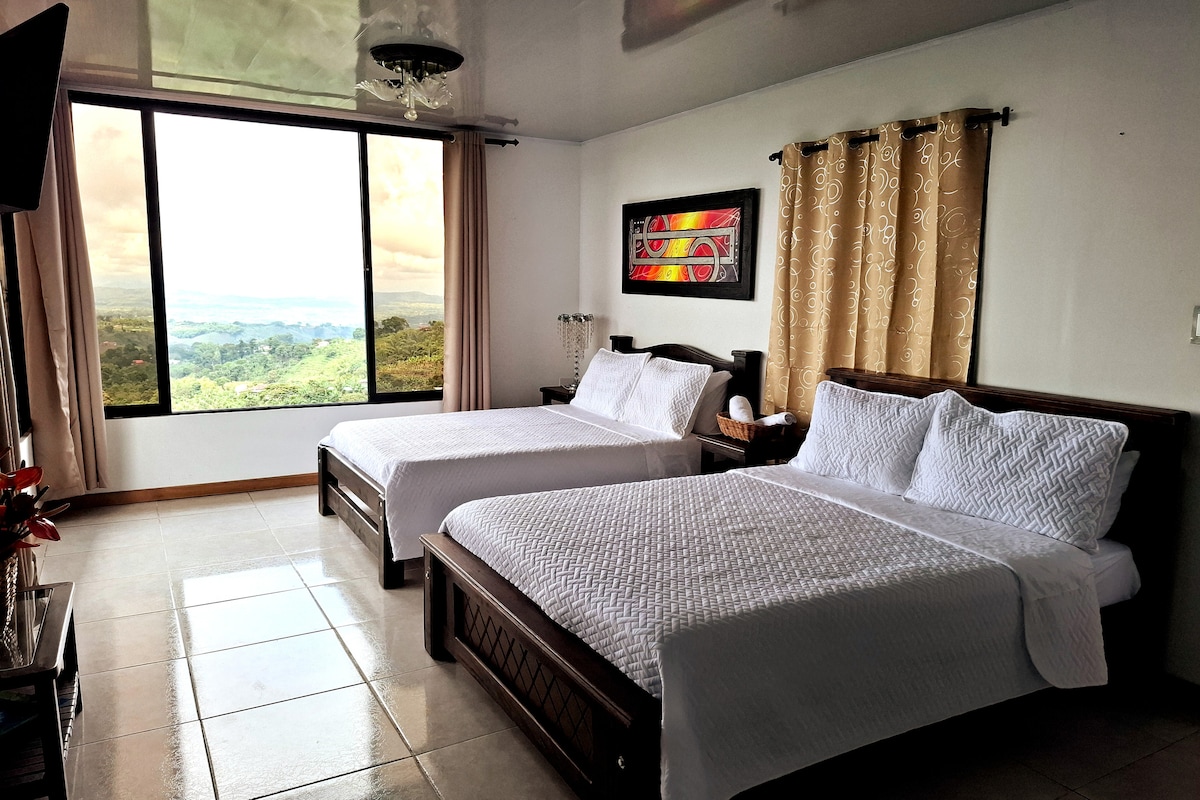Unsere SUITE SUNSET besteht aus einem privaten Whirlpool mit herrlicher Aussicht, einem Katamarannetz, einem komfortablen Schlafzimmer mit Queensize-Bett, einem Wohnzimmer mit Schlafsofa, einem kompletten Badezimmer, einem Balkon, einem Esszimmer und einer voll ausgestatteten Küche auf einer Gesamtfläche von 60 Quadratmetern. GRAN VISTA Glamping and Suites ist die Landunterkunft mit der besten Aussicht auf Pereira und nur 15 Minuten vom Stadtzentrum und Flughafen entfernt. Frühstück inbegriffen. Optionales exquisites Menü zum Mittag- und Abendessen sowie Cocktails.