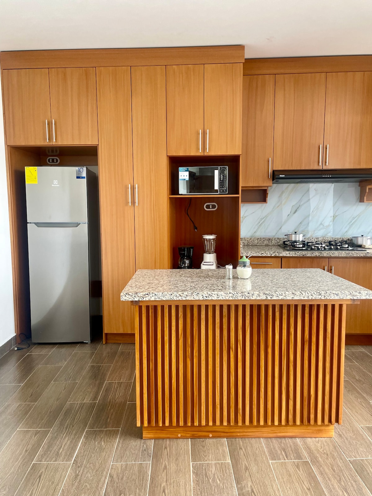 Diese Wohnung basiert auf der Idee von Luxus und Komfort. Vom ersten Moment an werden Ihnen das tolle Design und die Annehmlichkeiten auffallen, die es bietet. Es verfügt über 1 Schlafzimmer, 1,5 Badezimmer, 2 Schlafsofas und 65-Zoll- und 75-Zoll-Fernseher im Wohnzimmer und Schlafzimmer. Stromgenerator im Gebäude Beeindruckend ist auch die Gegend, in der es sich befindet, nämlich die Avenida Ordóñez Lasso, die sich durch ihre luxuriösen Gebäude, ihre Sicherheit und das schöne Flussufer.