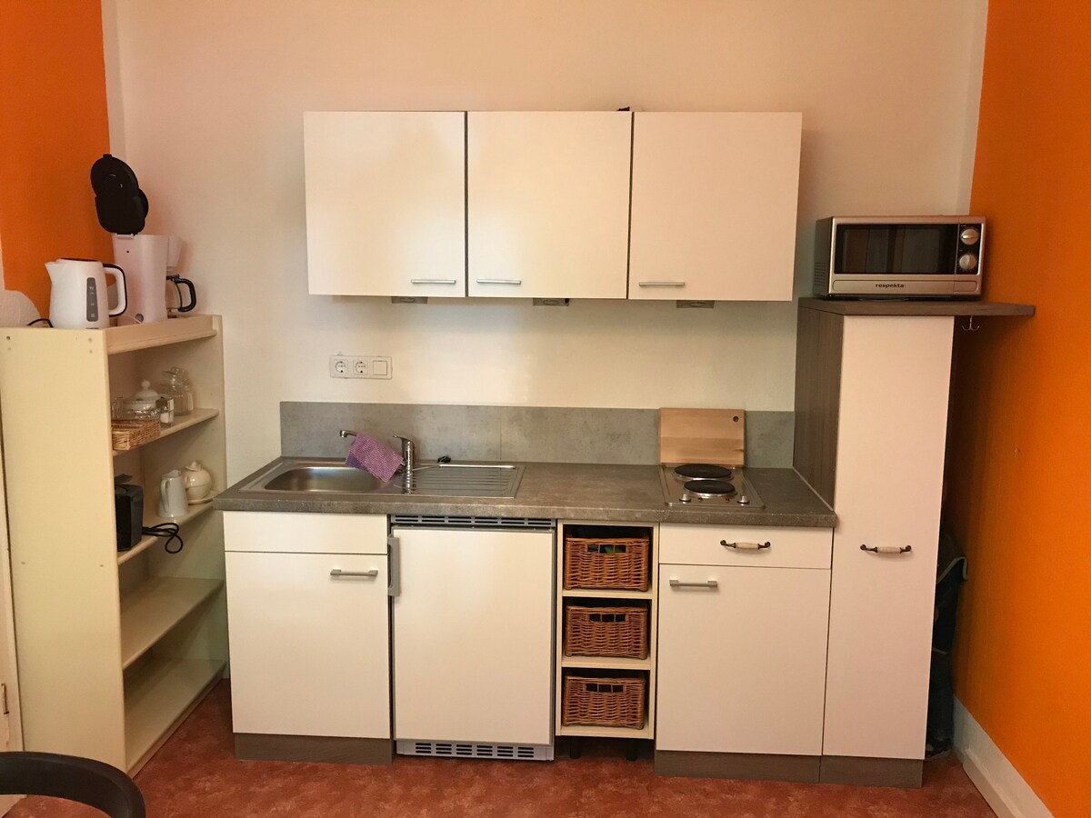 Fühl dich wie zu Hause in einem stilvoll eingerichteten Studio. Das Studio ist ein Anbau an einem Einfamilienhaus und verfügt über einen separaten Eingang sowie einer separaten Terrasse mit Blick in den großen Garten. Auf der Terrasse kann bei gutem Wetter gegrillt oder einfach entspannt die Abendsonne genossen werden. Im Studio befindet sich eine Küchennische mit mobilen Herdplatten, Mikrowelle und Nespresso VERTUO Next Kaffeemaschine. Eine gemütliche Sitzecke lädt zum Entspannen ein.