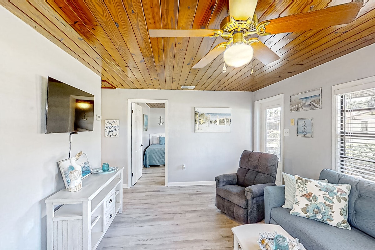 Genieße einen kurzen oder langfristigen Aufenthalt in unserer gemütlichen 2-Zimmer-/2-Badezimmer-Wohnung mit einem Schlafsofa für insgesamt 6 Gäste. Ob du allein oder mit der Familie etwas unternimmst, dies ist das Zuhause für dich. Neben dem Carport haben wir zusätzlichen Parkplatz für mehr Autos oder für einen LKW und Anhänger bis zu 16 Fuß lang. Wir haben einen Arbeitsplatz mit Internetgeschwindigkeiten von bis zu 200 Mbit/s. Ausgewiesener Raucherbereich draußen.