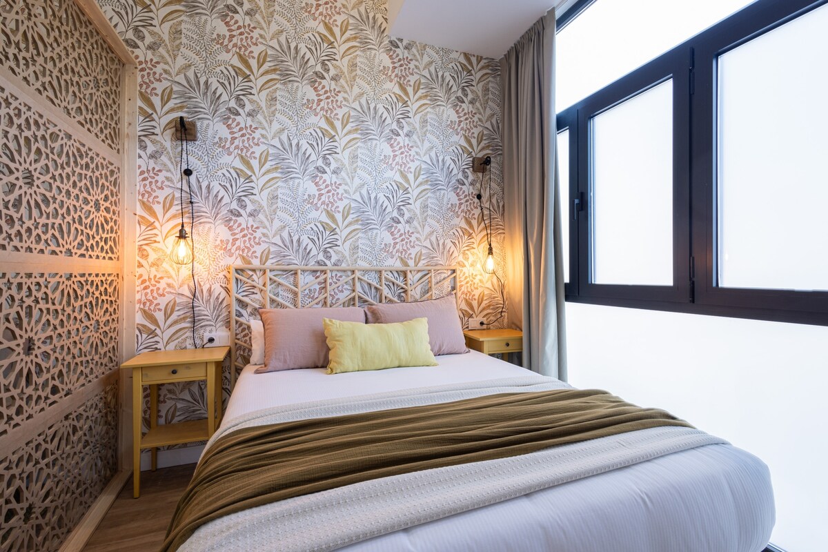 Stilvolles nordisches Design trifft in diesem Haus auf warmes spanisches Wohnen, wo kräftige Farben das moderne Dekor hervorheben. Entspanne dich in den ruhigen, offenen Räumen oder auf dem sonnigen Balkon mit Blick auf die Straßen. Genieße einen erfrischenden Moment im geräumigen Badezimmer oder bereite dir in der voll ausgestatteten und möblierten Küche eine wunderschöne Mahlzeit zu. Und wenn du deinen Erkundungstag in der Stadt satt hast, gibt es nichts Besseres als die Ruhe des Schlafzimmers und das bequeme Bett.
