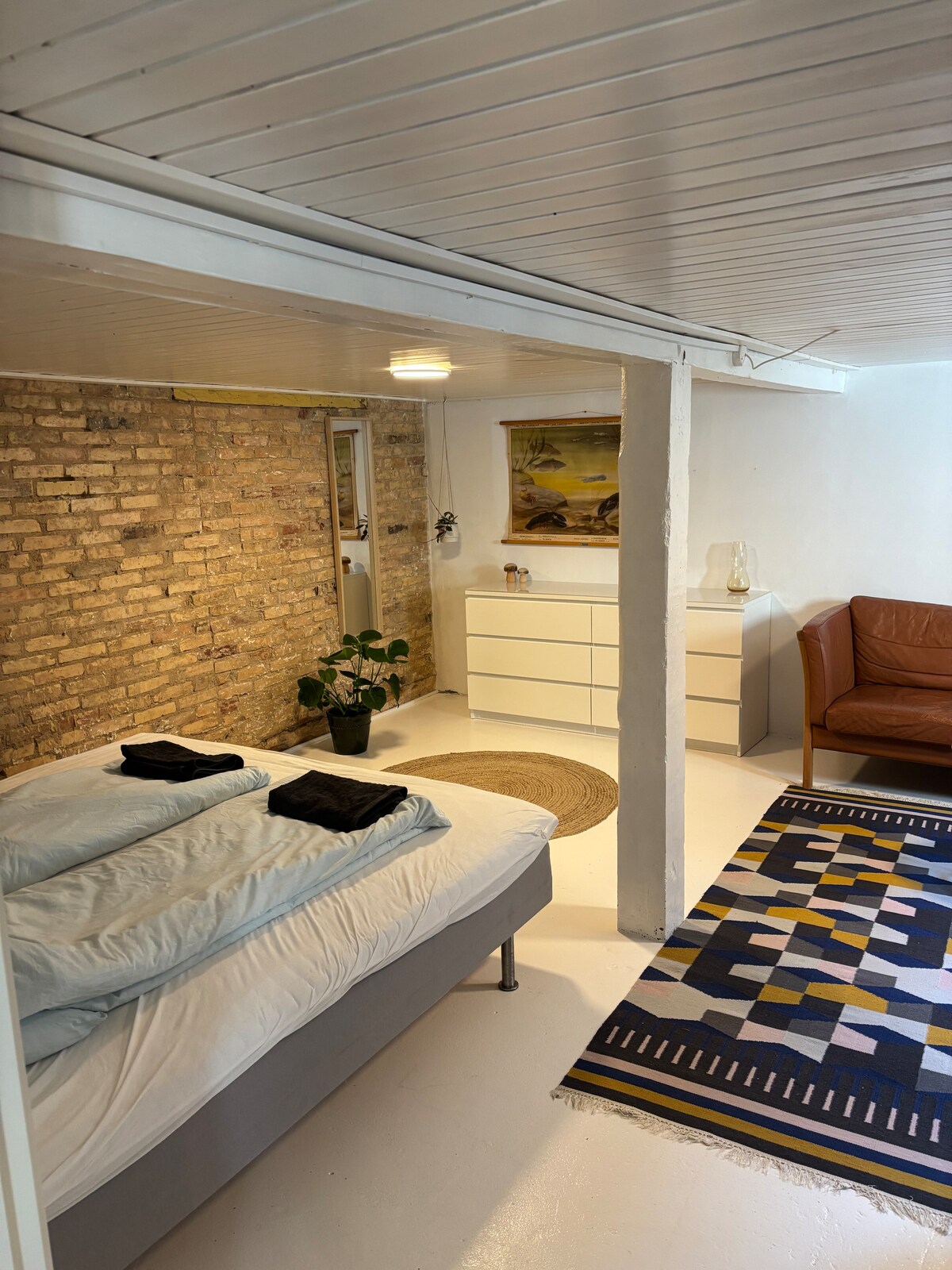 Genieße einen ruhigen, zentral gelegenen Aufenthalt in unserer kürzlich komplett renovierten 75 m² großen Wohnung. Ideal für Alleinreisende oder Paare, die Odense erkunden. Die Highlights: - Großes Schlafzimmer mit Kingsize-Bett - Voll ausgestattete Küche - 75-Zoll-Samsung-Frame-TV - Ausreichend Stauraum - Außenterrassen-Set - Gemütliche dänische Hygge überall - Optionale Queen-Air-Matratze - Schlüsselloser Zugang Dies ist unser persönliches Zuhause in Dänemark, das wir sorgfältig renoviert haben. Wir freuen uns, es mit dir zu teilen.