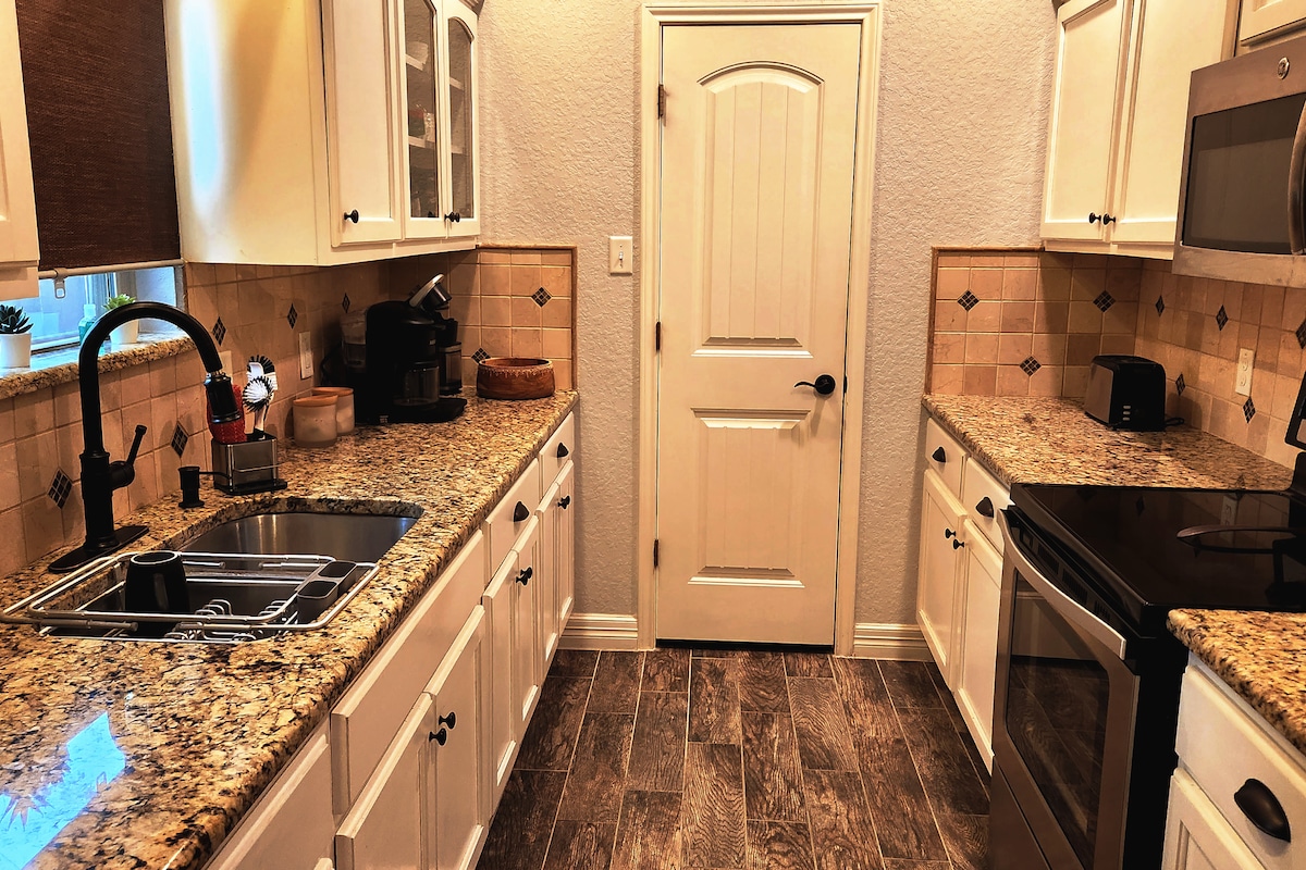 Genieße einen modernen Kurzurlaub in Texas, perfekt zwischen San Antonio und New Braunfels. Dieses 3BR/2BA-Haus verfügt über eine geräumige Aufteilung, eine voll ausgestattete Küche, Smart-TVs, schnelles WLAN und familienfreundlicher Spaß mit einem Billardtisch in der Garage, Brettspielen und einer ausziehbaren Couch/Liege. Entspanne im privaten Hinterhof mit Grill und Fußballnetz. Nur wenige Minuten zum Forum, Randolph AFB, Schlitterbahn, Caverns, Comal & Guadalupe Rivers und zum River Walk. Ideal für Familien, Gruppen oder Geschäftsreisende.