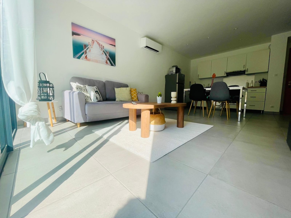 Une rénovation réussie avec des matériaux de qualité font de ce superbe studio climatisé un lieu unique pour passer de belles vacances. Cuisine équipée, douche à l'Italienne, climatisation, canapé convertible Premium, réfrigérateur-congélateur, lave-vaisselle, lave-linge, TV, WiFi définissent ce studio. La belle terrasse face à la mer est équipée d'une table, de chaises et de chiliennes, Le parking est situé devant la résidence. En résumé, tout est pensé pour passer un séjour inoubliable.