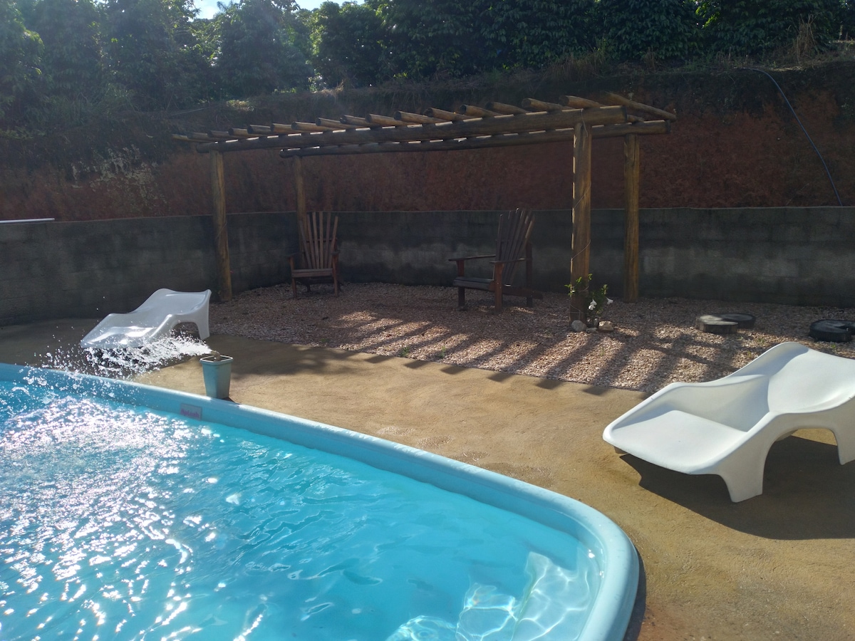 Charmantes und gemütliches Haus, im berühmten Serra Negra Condominium, 4 km vom Stadtzentrum entfernt. Einfacher Zugang mit gepflasterten Straßen. Sehr ruhige und absolut sichere Lage. Ausgezeichnetes Klima. Trinkwasser an allen Wasserhähnen. Grill und Pool mit herrlicher Aussicht und unvergesslichen Sonnenuntergängen. Behandelt Haustiere. Eingezäunter Garten, kein Risiko für dein Haustier. Haus komplett mit allem, was benötigt wird. Die Stadt mit tollem Handel, Restaurants, Bäckereien, Märkten und dem berühmten Fontana Di Trevi