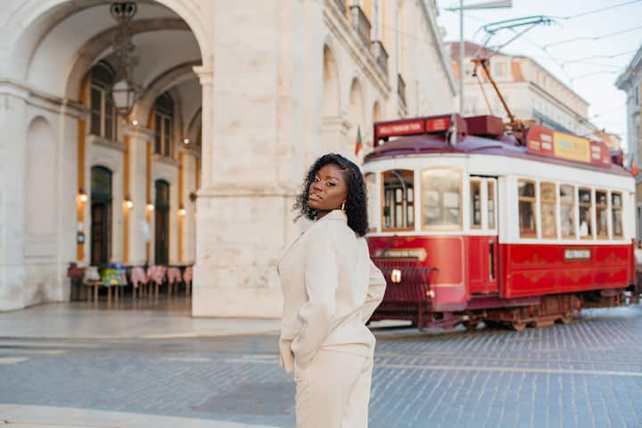 Genieße ein Fotoshooting im Zentrum von Lissabon, in der Gegend des Hauptplatzes und des Triumphbogens, Alfama, Baixa, der „Rosa Straße“ usw. Du erhältst mehr als 150 Fotos mit grundlegender Bearbeitung, Farbkorrektur und einer Auswahl an iPhone-Videografie.