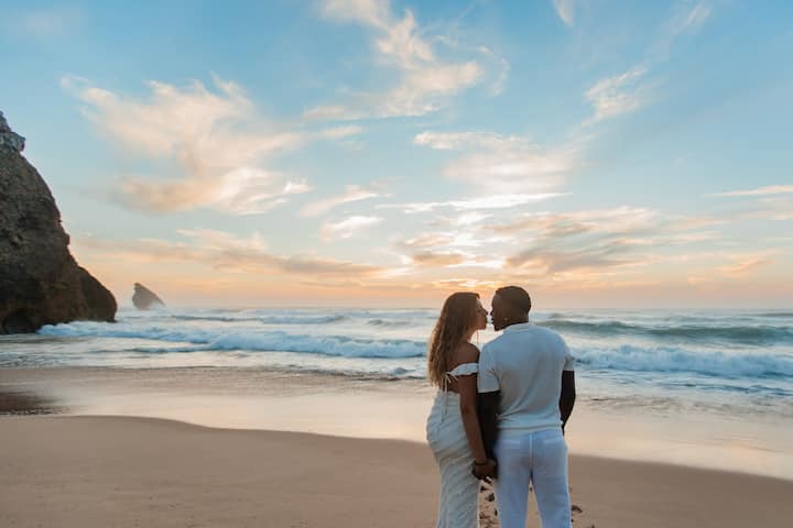 Genieße den Ozean bei dieser Fotosession am Strand in Praia da Adraga oder Costa da Caparica. Du erhältst 80–100 bearbeitete und farbkorrigierte Fotos.