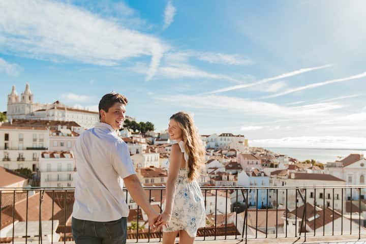 Diese kurze Fotosession findet im Herzen von Lissabon statt, einschließlich eines Ortes mit dem Bogen oder Aussichtsplattformen in Alfama. Sie erhalten bis zu 40 Fotos mit einfacher Farbbearbeitung.