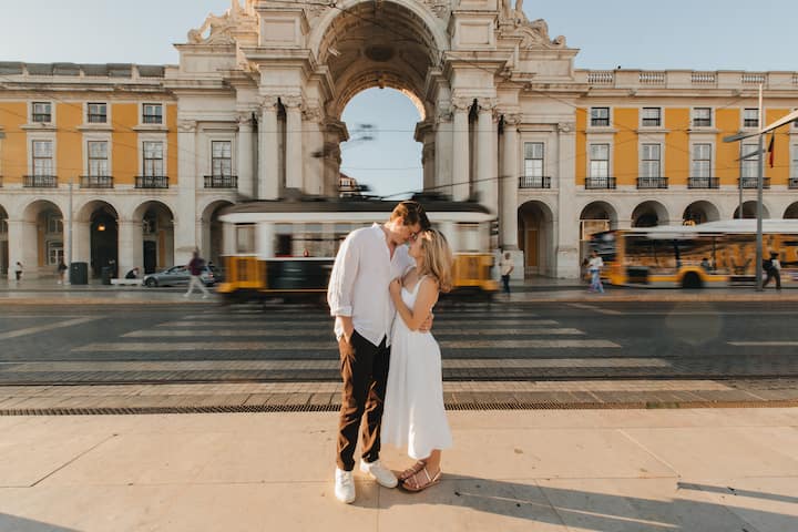 Nimm an einem Fotoshooting im Zentrum von Lissabons ikonischem zentralen Platz und Bogen mit sekundärer Lage in Alfama oder Baixa teil. Sie erhalten 80–90 Fotos mit grundlegender Bearbeitung und Farbkorrektur.