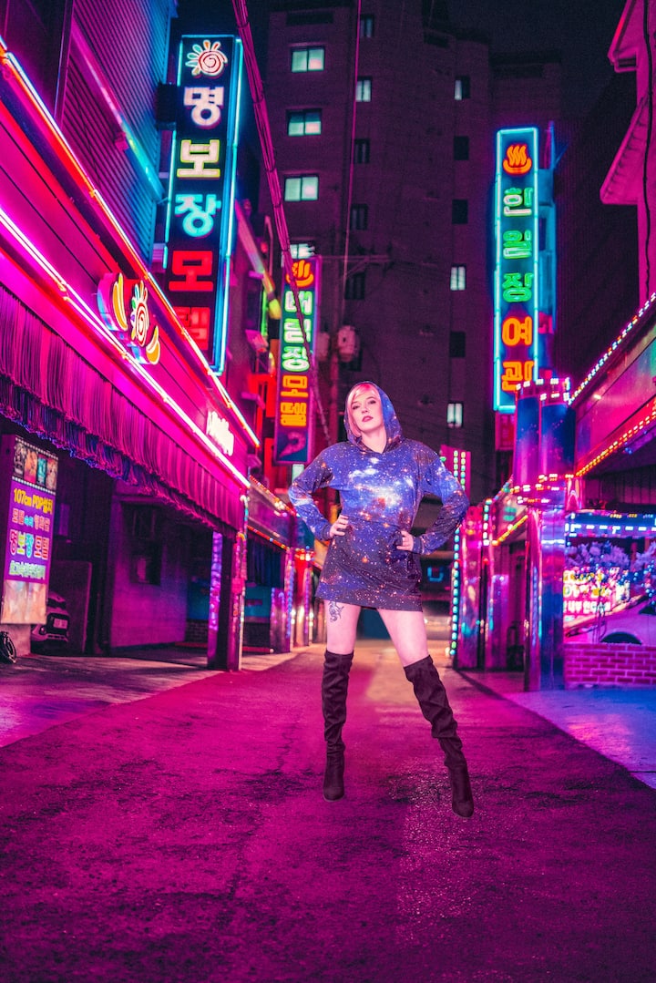 Cyberpunk-Stil der Nachtfotografie, voller koreanischer Schilder mit Neon in Seoul. Mindestens 500 Fotos garantiert, Sitzungszeit veränderbar.
