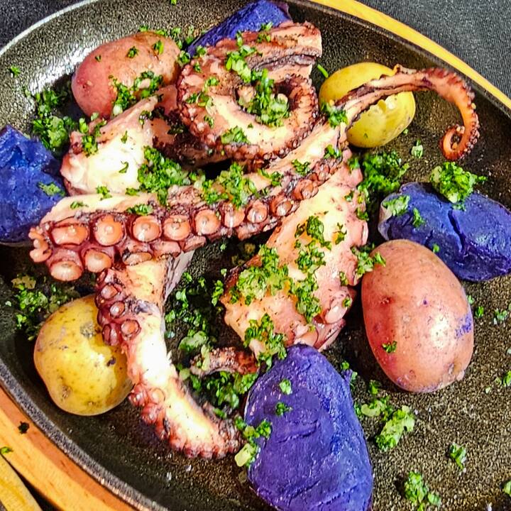 II. Oktopus mit Kräutern und provenzalischen und Regenbogen-Babykartoffeln